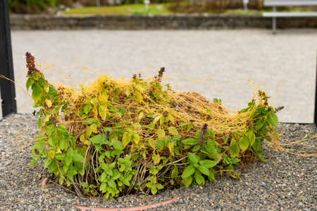 Saint Gallen, Switzerland, September 1, 2025 Cuscuta Campestris or field dodder plant at the botanical garden