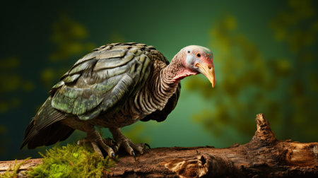 a bird perched on a wooden branch, showcasing vibrant green feathers. this national geographic-style photo captures the essence of prehistoric art with its saturated colors and photo-realistic techniques. the softbox lighting adds depth to the image, while the bird's cranberrycore hues and baroque animal features make it truly captivating. ai generated