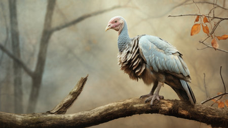 Turkey on a blurred background. Place for text, banner with bird, traditionally American bird for Thanksgiving day, symbol of festive feast. Generative AI