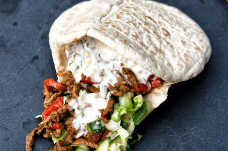 Kebab - Meat with vegetables in pita bread roll