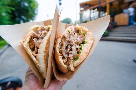Turkish doner kebab in a restaurant on the street.