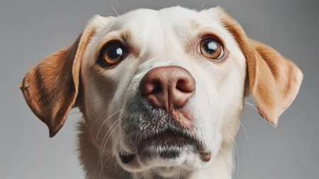 Endearing Beagle Portrait with Expressive Eyes and Gentle Demeanor Against a Clean Gray Backdrop