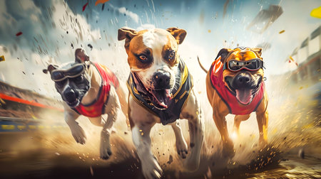 Exhilarating Dog Racing Competition with Blurred Motion Dust and High Energy Action on the Track