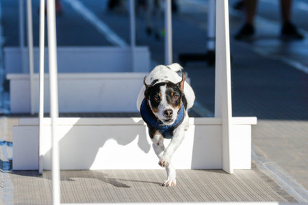 Photo of an elegant dog participating in a canine agility