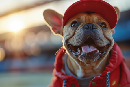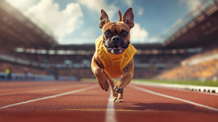Sporty Dog As A Champion Athlete In A Racing Outfit.