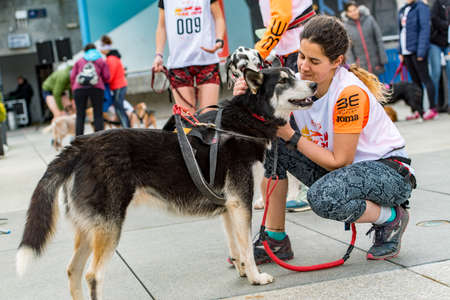 Encamp, Andorra : 1 March 2020 : People and dogs in the amateur race in Encamp. Canicross in Andorra.