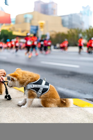 Shiba Inu dog walking on the street, Japan.