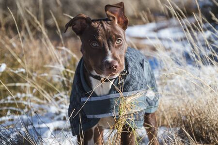 Dog dressed for winter weather