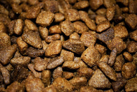 Dog or cat food or kibble shot up close. Top view background