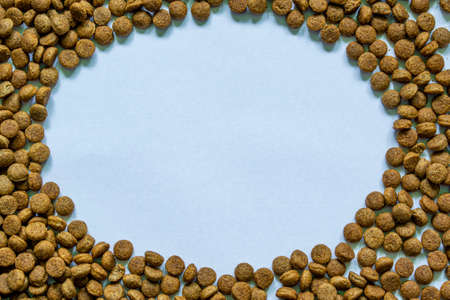 round frame of dry pet food isolated on white, panoramic shot