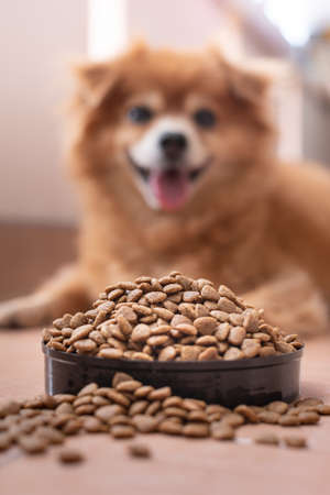 Dog dry healthy food from purina close up background high quality big size print