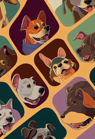 Group of cute dogs for wallpaper and graphic designs. 2D Illustration.
