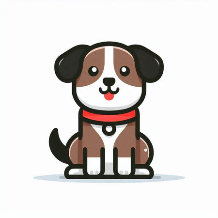 Cute cartoon dog with red collar on white background. Vector illustration.
