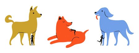 Set of cute cartoon dogs. Vector illustration. Colorful flat design.