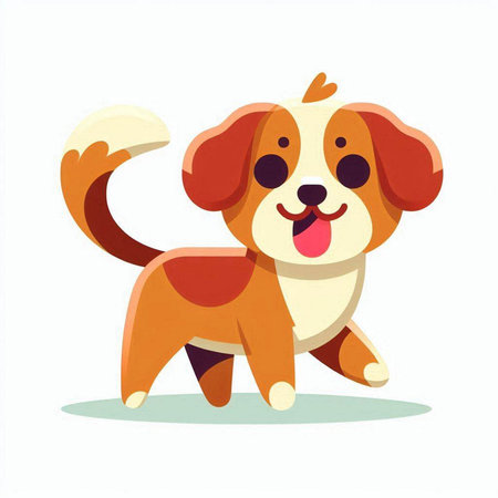 Illustration of a Cute Cartoon Puppy on White Background.