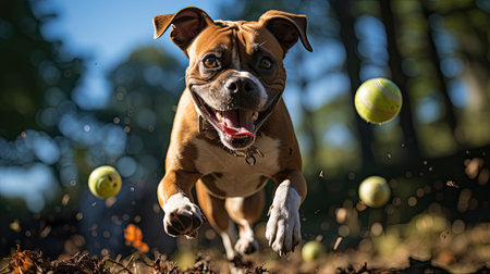 A Boxer (Canis lupus familiaris) playing with a ball in a park, its muscular body, and playful nature making it a perfect pet for active owners.