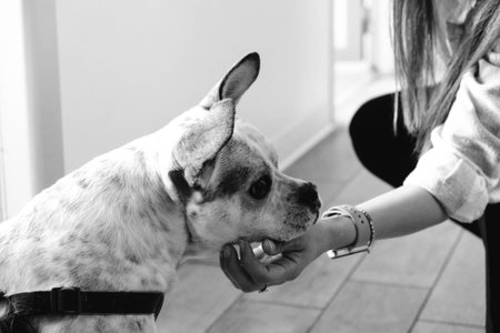A close-up of a human hand shaking a dog's paw, symbolizing trust, friendship, and a strong bond between pets and owners. High quality photo