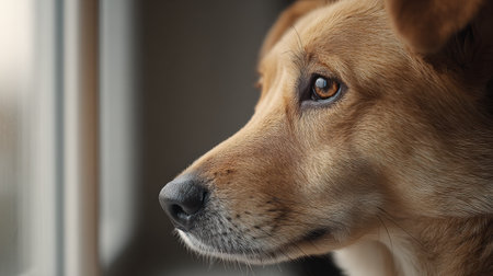 Adorable dog gazing into the distance, capturing the softness and beauty of the moment with a bokeh background. Perfect for pet lovers. Generated AI.