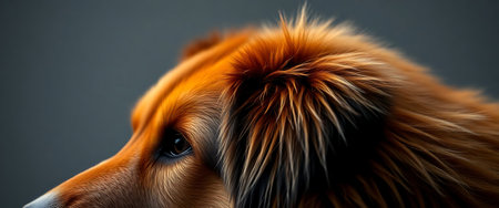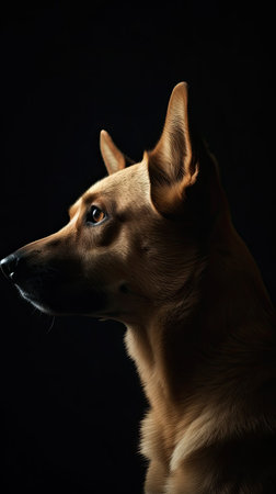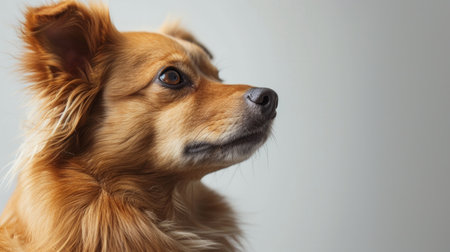 In a quiet moment, a loyal canine companion is captured in a stunning profile portrait. Ethereal vapor adds a touch of drama and mystery, highlighting the dogs noble and attentive expression against a simple gray background.