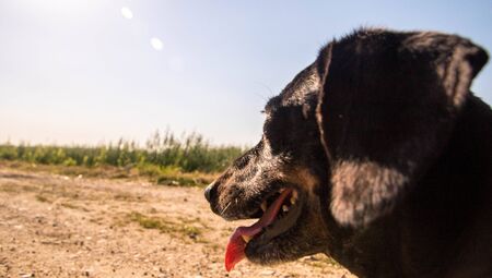 Lifes complete the moment you get a dog. an adorable dog outside in the yard.