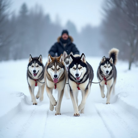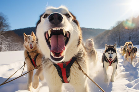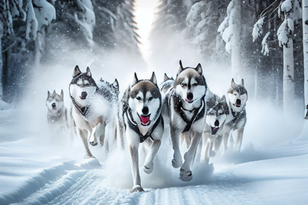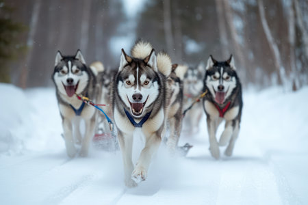 Sled Dogs: Document the power and beauty of sled dogs in action, especially in northern regions. - Generative AI