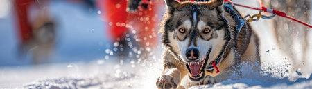 A determined sled dog races through the snow, its tongue out and eyes focused on the finish line The blur of motion creates a sense of speed and excitement AI Generative