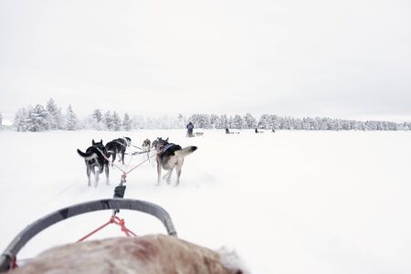 Siberian husky sled dog race in Lapland, Finland