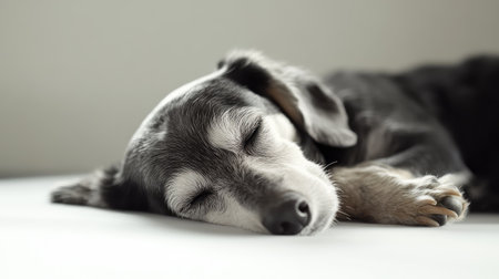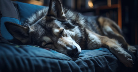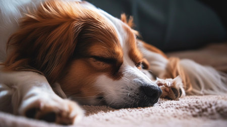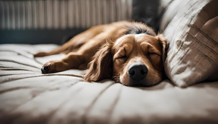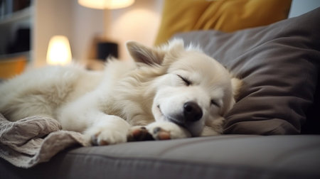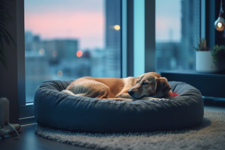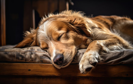 a sleeping dog in a quiet and dimly lit room, created with generative ai