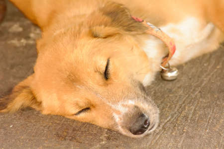 Close-up of head of homeless stray dog sleeping on the street