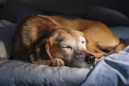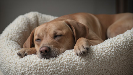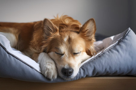 Adorable dog peacefully napping in soft plush bed
