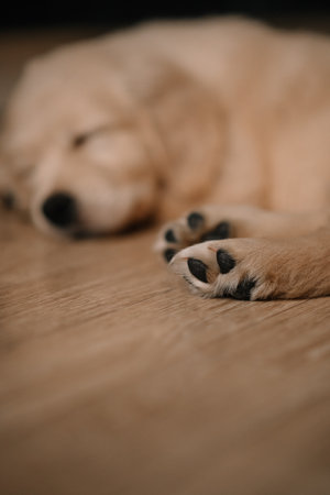 sleeping golden retriever puppy. puppy paws