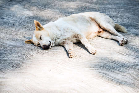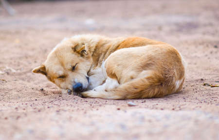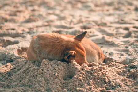 Stray dog is sleeping on the beach with a warm sunlight