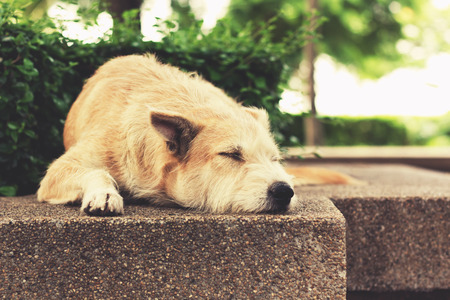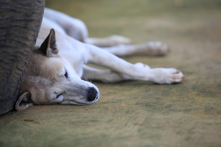 Thai dog is sleeping on the table, Thailand.