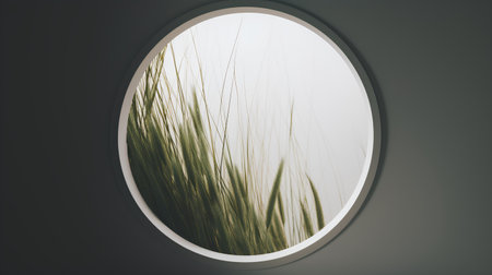 Green wheat ears in oval frame on grey background. 3D rendering