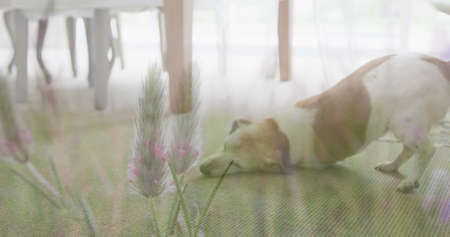 Blurry dog and flower for background