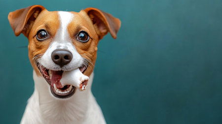 Playful Jack Russell Terrier with a Bone in Its Mouth, Captivating Close-Up Portrait in Nature