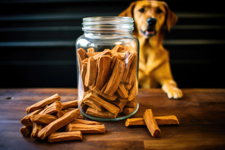 glass jar filled with homemade dog treats, created with generative ai