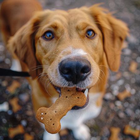 cute dog with dog biscuits.