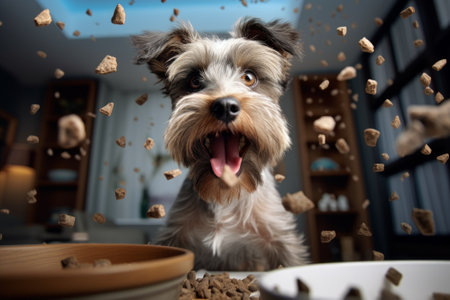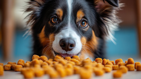 Dog food looking lively and yummy in a professional commercial photo,