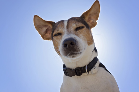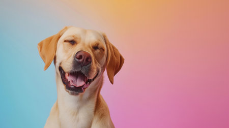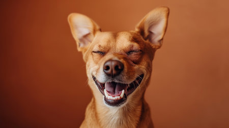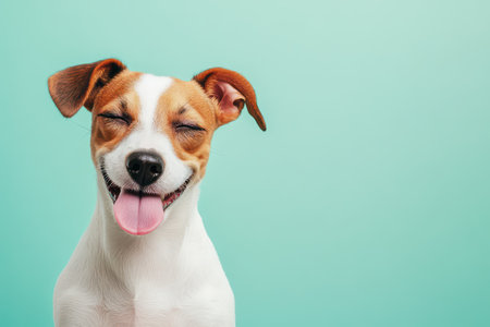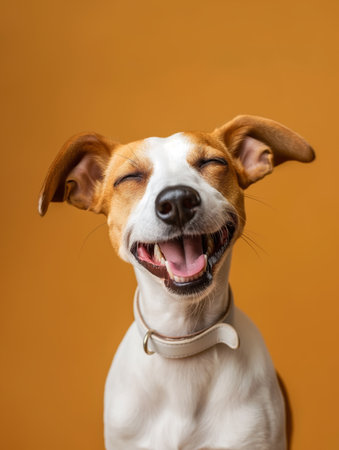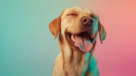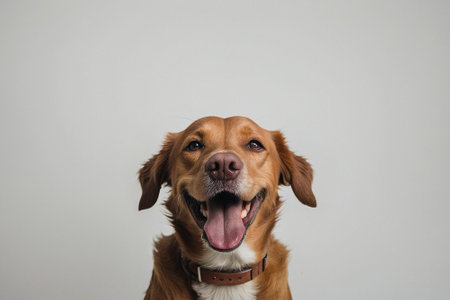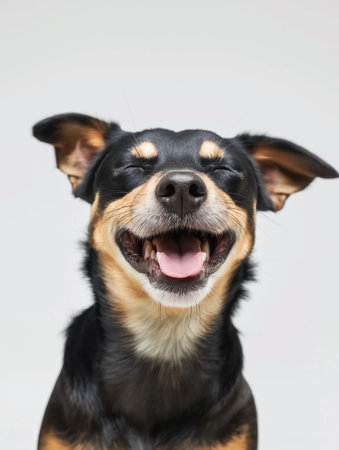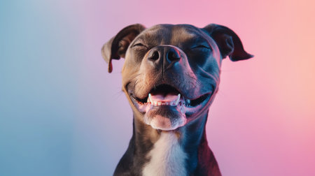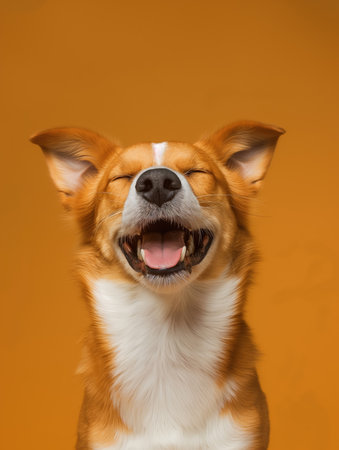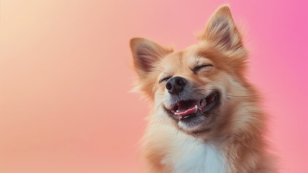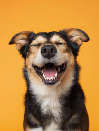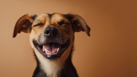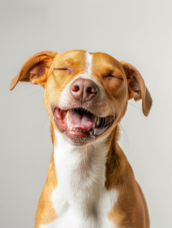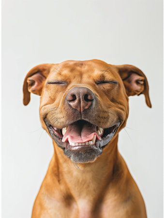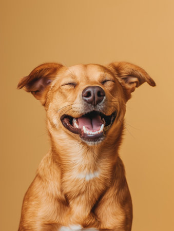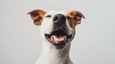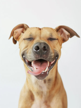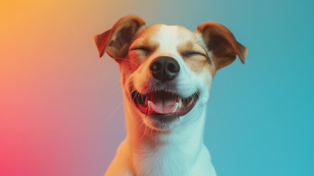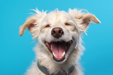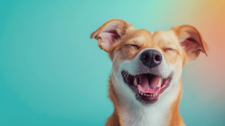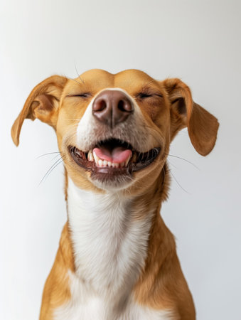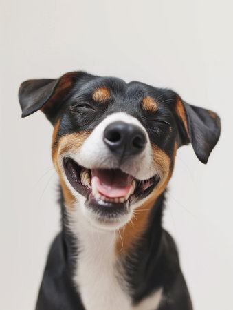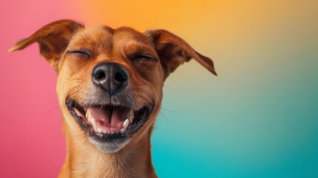Joyful dog with a smile on a bright background