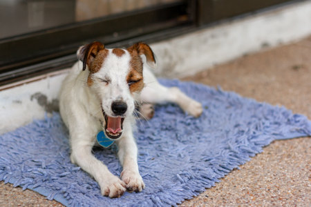 A cheerful dog lounging on a rustic porch, soaking in the warm afternoon light. This heartwarming scene captures the essence of relaxation and companionship.