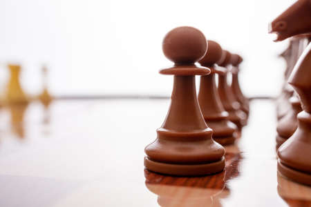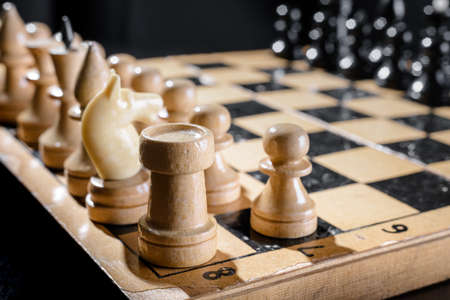 Wooden chess pieces on the chessboard. Intellectual game -chess.