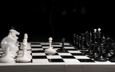 Black pawn against the White Chess Set on Black Background