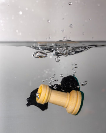 Some chess pieces drop with a splash in clear water