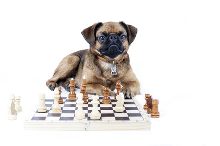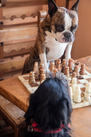 a boston terrier playing a game of chess
