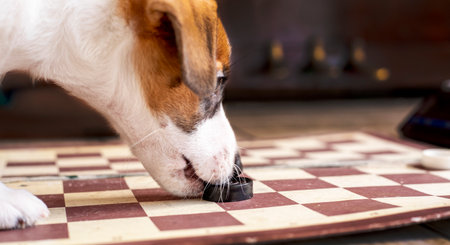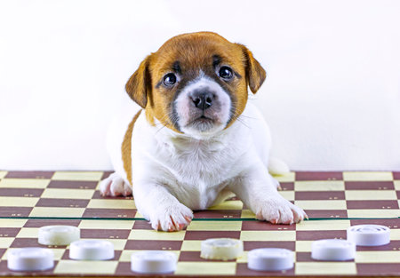 jack russell terrier puppy playing checkers, horizontal