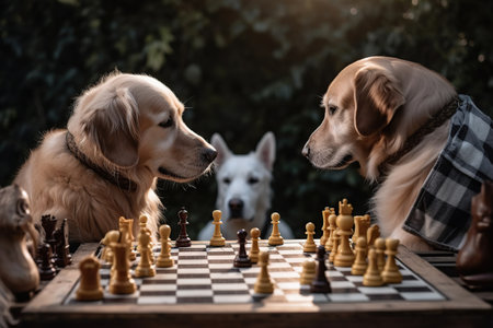 labrador dogs play chess in nature. generative ai
