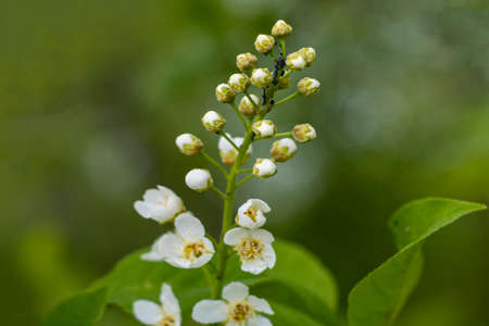 white rowan flowers on a background of green leaves.mountain ash in bloom.bright spring background,