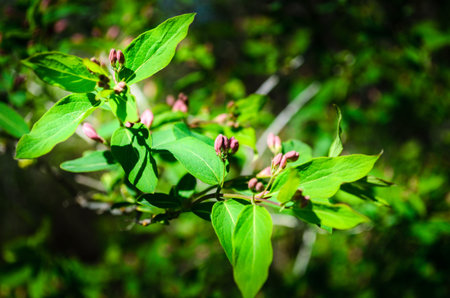 Close-up of sunlit flower buds on a bush with out of focus background