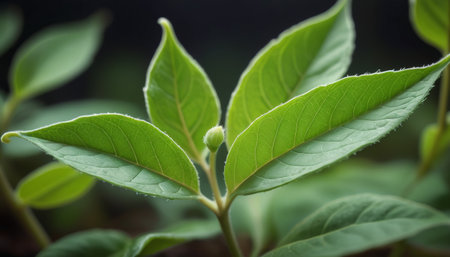 A close-up view of delicate flower buds nestled among lush green leaves, showcasing the beauty of nature in springtime. This serene image captures organic growth.